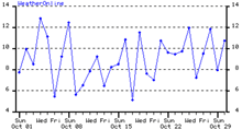 ![]() | 2 Ekim 2000 ve 30 Ekim 2000 arasındaki Londra’nın günlük maksimum sıcaklıkları. |